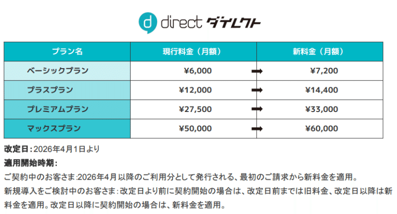 ① 4月からの価格改定(値上げ)効果のフル寄与 2026年4月1日より「direct」の利用料金を一律20%引き上げる 。本施策の影響は第2四半期より業績に反映される 。同サービスは現場の業務基盤として深く定着しており、スイッチングコストが高いことから、大規模な解約リスクは限定的である 。