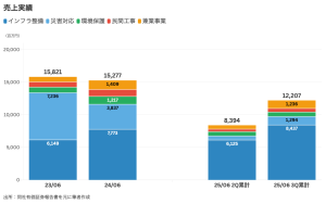 一方で受注高の推移を見ると、2025年6月期第3四半期累計で約139億円と、前年をやや下回る水準にとどまる中、これまで主力だった災害対応が縮小する一方で民間工事が第3四半期だけで約44億円を受注しており、今後の成長は民間工事の動向がカギを握る可能性もあるのかもしれない。この点は今後に注目である。