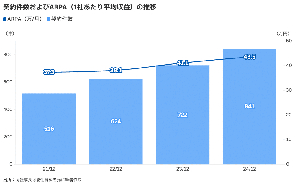 下表は、契約件数およびARPA(1社あたり平均収益)の推移を示している。