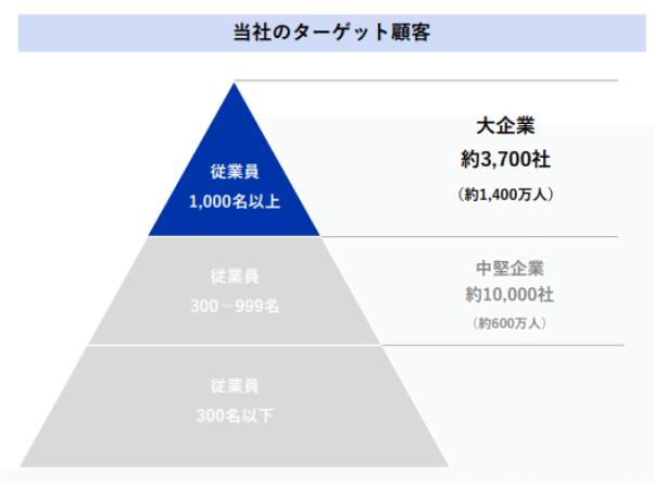 同社がターゲットとする市場は、従業員1,000名以上の大企業約3,700社(就業人口約1,400万人)である。このエンタープライズ市場において同社製品が選ばれ続ける本質的な理由は、大企業特有の複雑怪奇な業務プロセスをそのままデジタル化できる「機能的充足度」と、非IT人材でもシステムを構築できる「低学習コスト(使いやすさ)」という、通常はトレードオフの関係にある二つの要素を両立させていることにある。
