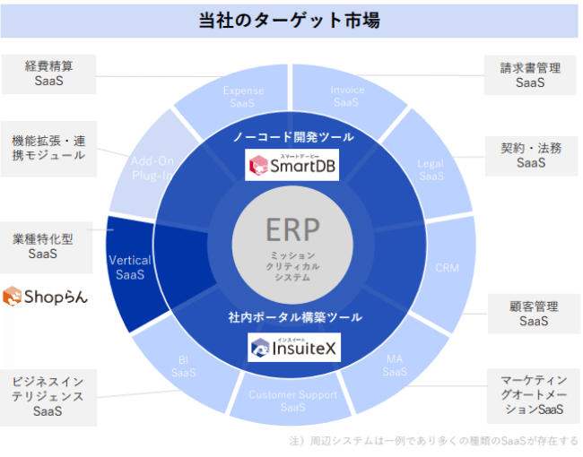 このBD領域を攻略し、大企業のシステム構造を抜本的に変革するための同社の独自戦略が「MCSA(Mission Critical System Aid:ミッションクリティカルシステムエイド)」である。MCSAとは、ERPのフロントに位置する「準基幹システム領域(財務会計等の周辺システム、契約管理、予算管理、シェアードサービス基盤など)」を、完全ノーコードのSmartDBで構築するというコンセプトである。同社が「Support(サポート)」ではなく「Aid(エイド)」という表現を用いる理由は、「困難な状況にある組織を実践的に助ける」という強いコミットメントを示しているためである。