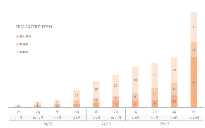 ● 保守的な見積もり:ZETA ADの導入案件数は代理店経由を含めて顕著に増加しているが 、今期の売上計画には前期と同程度しか織り込まれていない 。