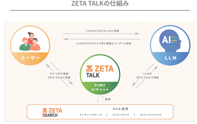 ZETA TALK: RAGを組み合わせ、検索と会話を一体化させたEC向けAIチャット 。