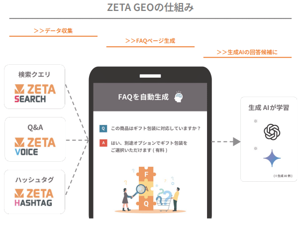 ZETA GEO: 生成AIに学習されやすい構造化データを自動生成し、生成AI検索経由の流入を最適化する「AI時代のSEO」サービス 。