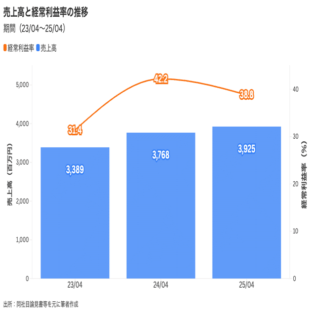 下表は、同社の売上高と経常利益率の推移を示したものとなる。